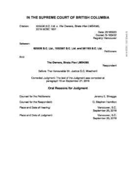 625536 B.C. Ltd. v. Strata Plan LMS4385 (BC Supreme Court) September 20, 2018