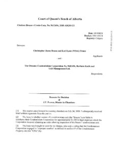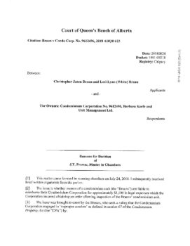 Braun v. Condo Corp. No. 9612496 (Alberta Court of Queen’s Bench) August 24, 2018
