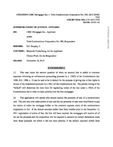 CIBC Mortgages Inc. v. York Condominium Corporation No. 385