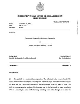 Cornerstone Heights Condominium Corporation v. Payam (Saskatchewan Small Claims Court) December 10, 2019