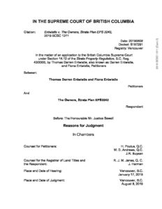 Entwistle v. The Owners, Strata Plan EPS 3242 (BC Supreme Court) August 8, 2019