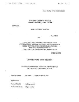 Foschia v. Carleton Condominium Corporation No. 25 (Ontario Small Claims Court) November 10, 2016