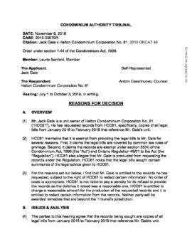 Jack Gale v. Halton Condominium Corporation No. 61 (CAT)