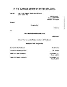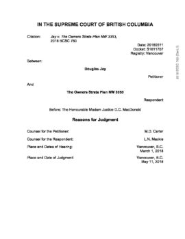 Jay v. The Owners Strata Plan NW 3353 (BC Supreme Court) May 11, 2018