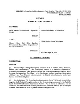 Leeds Standard Condominium Corp. No. 41 v. Fuller (Ontario Superior Court) June 24, 2019