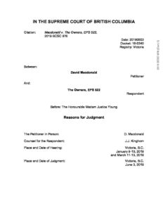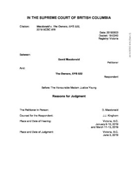 Macdonald v. The Owners, EPS 522 (BC Supreme Court) June 3, 2019