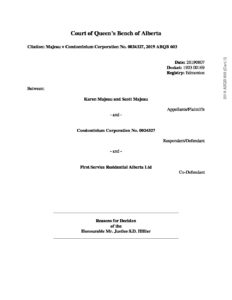 Majeau v. Condominium Corporation No. 0024327 (Alberta Court of Queen’s Bench) August 7, 2019