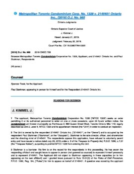 MTCC 1328 v. 2145401 Ontario Inc. (Ontario Superior Court) February 20, 2019