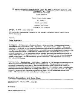 Peel Standard Condominium Corporation No. 984 v. 8645361 Canada Ltd. (Ontario Superior Court) July 13, 2018