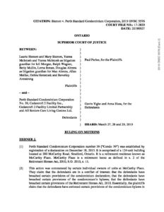 Siemon v. Perth Standard Condominium Corporation No. 39 (Ontario Superior Court) September 27, 2019