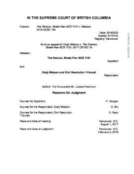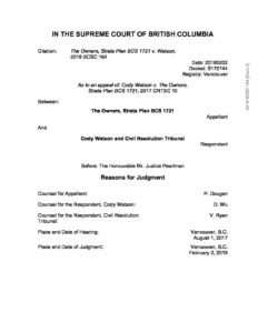 The Owners, Strata Plan BCS 1721 v. Watson (BC Supreme Court) February 2, 2018