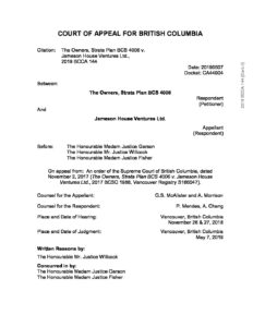 The Owners, Strata Plan BCS 4006 v. Jameson House Ventures (BC Court of Appeal) May 7, 2019