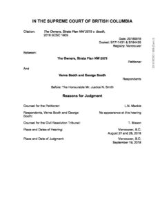 The Owners, Strata Plan NW 2575 v. Booth (BC Supreme Court) September 19, 2018
