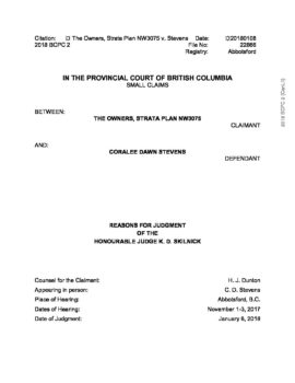 The Owners, Strata Plan NW3075 v. Stevens (BC Small Claims Court) January 1, 2018