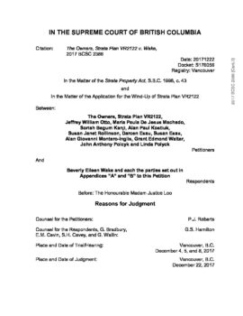 The Owners, Strata Plan VR2122 v. Wake (BC Supreme Court) December 22, 2017