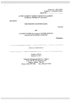 Toronto Dominion Bank v. Potter (Alberta Court of Queen’s Bench) October 20, 2017
