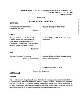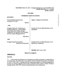 TSCC 2051 v. Georgian Clairlea Inc. (Ontario Superior Court) May 31, 2018