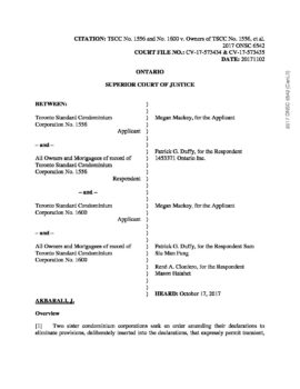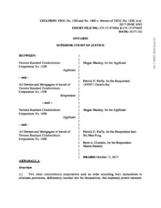 TSCC No. 1556 and No. 1600 v. Owners of TSCC No. 1556 (Ontario Supreme Court) November 2, 2017