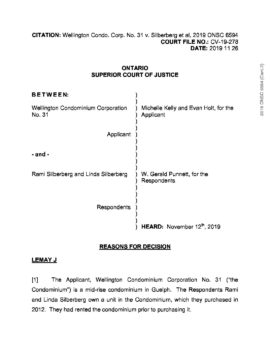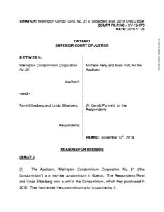 Wellington Condo. Corp. No. 31 v. Silberberg (Ontario Superior Court) November 26, 2019