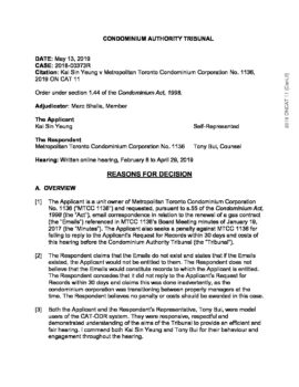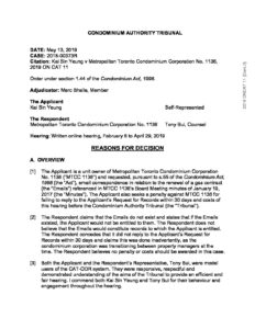 Kai Sin Yeung v Metropolitan Toronto Condominium Corporation No. 1136, 2019 ONCAT 11